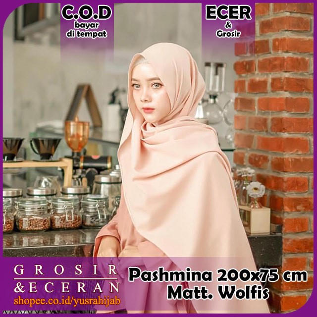 Pashmina Wolfis 200x75 syari Pasmina Woolpeach Ala Sabyan Malay Polos