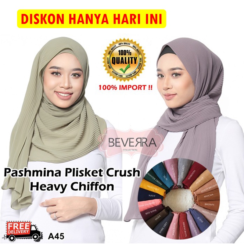 1 Pashmina Plisket crush bubble chiffon malaysia shawl A45 beverra hijab heavy chiffon pleated